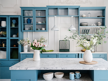 In einer geschlossenen Küche können Kochutensilien und Unordnung versteckt bleiben, was den Rest des Wohnraums ordentlicher wirken lässt.